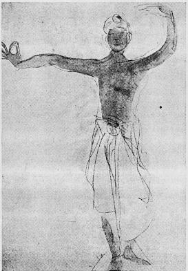 A bronze bust of Clemenceau by Rodin, and (below) his drawing "The Dancer" Illustrations from "Rodin" (Phaidon Press) ![]() It was at his déjeuner that one enjoyed Rodin's conversation. If, as often happened, distinguished guests were present, the talk would be brilliant. For Rodin was a good talker, and always trenchant and original in his sallies. If we were alone, Rodin would either discuss his work and reveal the secrets of his methods, or else would question me about England, English notabilities, the peerage, the Royal Family, or even English cooking. Sometimes, owing to his ignorance of English and the pronunciation of English names, these interrogations would end badly. He must have been told again and again the names of the people he used to discuss, but I soon discovered that he was more than slightly deaf, although he never admitted it. This made him trust more to his eye than his ear in pronouncing English names. And anyone with knowledge of French phonetics can imagine the result! To have the sounds "Bernarre Shuv" suddenly hurled at one and be expected to react intelligently was bad enough. But on one occasion things were far more serious. It was before I had had time to discover the work Rodin had been engaged upon before my arrival. Suddenly I found myself asked to tell him about a person called "Ovardevaldant". I begged him kindly to repeat the name, but only stared blankly when it came out in exactly the same way. I did not even know the sex of the creature named. Consternation seized me. "Mais voyons", Rodin exclaimed impatiently. "Vous n'allez pas me faire croire, jeune homme, que vous n'avez jamais entendu parler de Ovardevaldant?" Perhaps if I had been less anxious to please, I might have guessed. But with my eminent master growing every second more dumbfounded, and madame Rodin mutely imploring me not to upset him, my mind became a complete blank. "Ah, ça c'est trop fort!" cried Rodin, and shrugging his shoulders he gave me up as hopeless. Gradually, I at last elicited more details. "Ovardevaldant" was "un grand seigneur". He was "extrêmement aisé". In fact, he was "unlorre" "Lorrovardevaldant!" At long last, I guessed, and amid profuse apologies assured Rodin that, of course, I had heard of Lord Howard de Walden. "A la bonheur enfin!" Rodin exclaimed, and we both looked as hot as if we had been wrestling. The usual routine was that, when lunch was over, Madame Rodin would put on Rodin's boots and he would catch the train to Paris, either to work on a portrait bust or else on some piece requiring a model. He would return home about half-past five or six; sign his letters; wander off with his dog Cap to some quiet corner of the garden; take, at about seven, a light supper of Unlike the romantic artist who, after creating in a passion, returns in a sober moment to his work only to be surprised, Rodin knew that all he did in the for of exaggerated effects, subtle asymmetries, or the production of rough excrescences, on his figures or busts, which might suggest haste or fervour, were in reality deliberate. He viewed them as a scientist rather than as a dreamer. His principles were always lucid and precise. "Sculpture", he often said, "is an art of hollows and projections (de creux et de bosses). It is for the open air, and if it is not to look like cardboard it must vibrate as if with inner life." The technique of rendering this vibration of life within the natural form was the object of his untiring research, and his doctrines testify to his coolness as a scientific investigator of the problem. He never wearied of emphasising the radical difference between the product of nature and that of the sculptor's art a difference which is the chief pitfall of sculpture. For nature works from within outwards. The natural object grows by a process of proliferation, a shouldering of its form into space. Sculpture, on the other hand, grows by peripheral manipulation the converse of nature's way. A live man has cleft the air by an inner necessity. A sculpture of man comes into being by surface treatment, pressings and pinchings. Can a sculpture possibly be made to look as if it had grown from an inner necessity, like a natural form? Rodin knew that it could, if the proper technique could be found. The first step was to look at nature in a new way. This, he contended, consisted in seeing and feeling all the surfaces of a natural form, not as planes lying at right angles to the line of vision, but as terminal points of masses directed at the spectator, as the apices of thickness. "Look at every part of a living form", he would say, " as the extremity of a diameter directed at you, almost coming at you. If you cease to regard it as a surface in square measure you will have grasped my method of seeing when I am modelling. The artist who is able to feel and represent this feature of natural growth is hors concours." The rest would appear to follow. But the difficulties of the method in execution amounted to wresting a secret from life itself. Rodin was studious by nature, and was equipped for the task. To observe life sedulously was a pastime of which he never wearied. Robbed by his civilisation of daily familiarity with the nude, he filled his studios with models who wandered about naked under his scrutiny. They never actually posed. They moved about as they listed, only to be frozen into immobility by a word from him when an attitude called for closer study. When, therefore, we feel as if the vividness of Rodin's figures, their vitality, makes us catch our breath, we know we are contemplating sculptures in which the quiddity, so to speak, of life itself has been communicated to us, albeit in a lifeless material. No one can miss it.